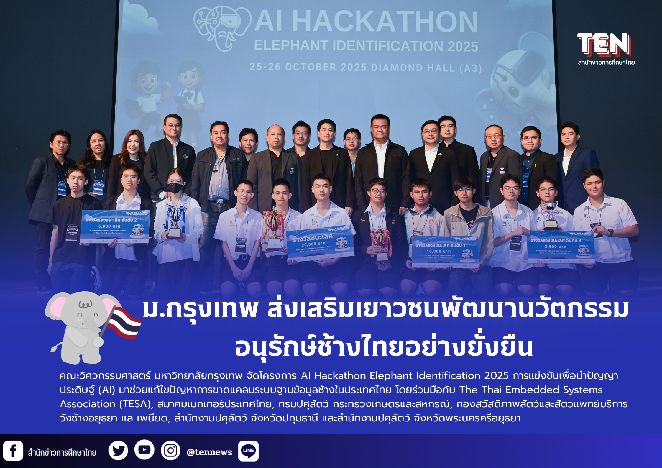 คณะวิศวกรรมศาสตร์ มหาวิทยาลัยกรุงเทพ จัดโครงการ AI Hackathon Elephant Identification 2025 การแข่งขันเพื่อนำปัญญาประดิษฐ์ (AI) มาช่วยแก้ไขปัญหาการขาดแคลนระบบฐานข้อมูลช้างในประเทศไทย โดยร่วมมือกับ The Thai Embedded Systems Association (TESA), สมาคมเมกเกอร์ประเทศไทย, กรมปศุสัตว์ กระทรวงเกษตรและสหกรณ์, กองสวัสดิภาพสัตว์และสัตวแพทย์บริการ, วังช้างอยุธยา แล เพนียด, สำนักงานปศุสัตว์ จังหวัดปทุมธานี และสำนักงานปศุสัตว์ จังหวัดพระนครศรีอยุธยา