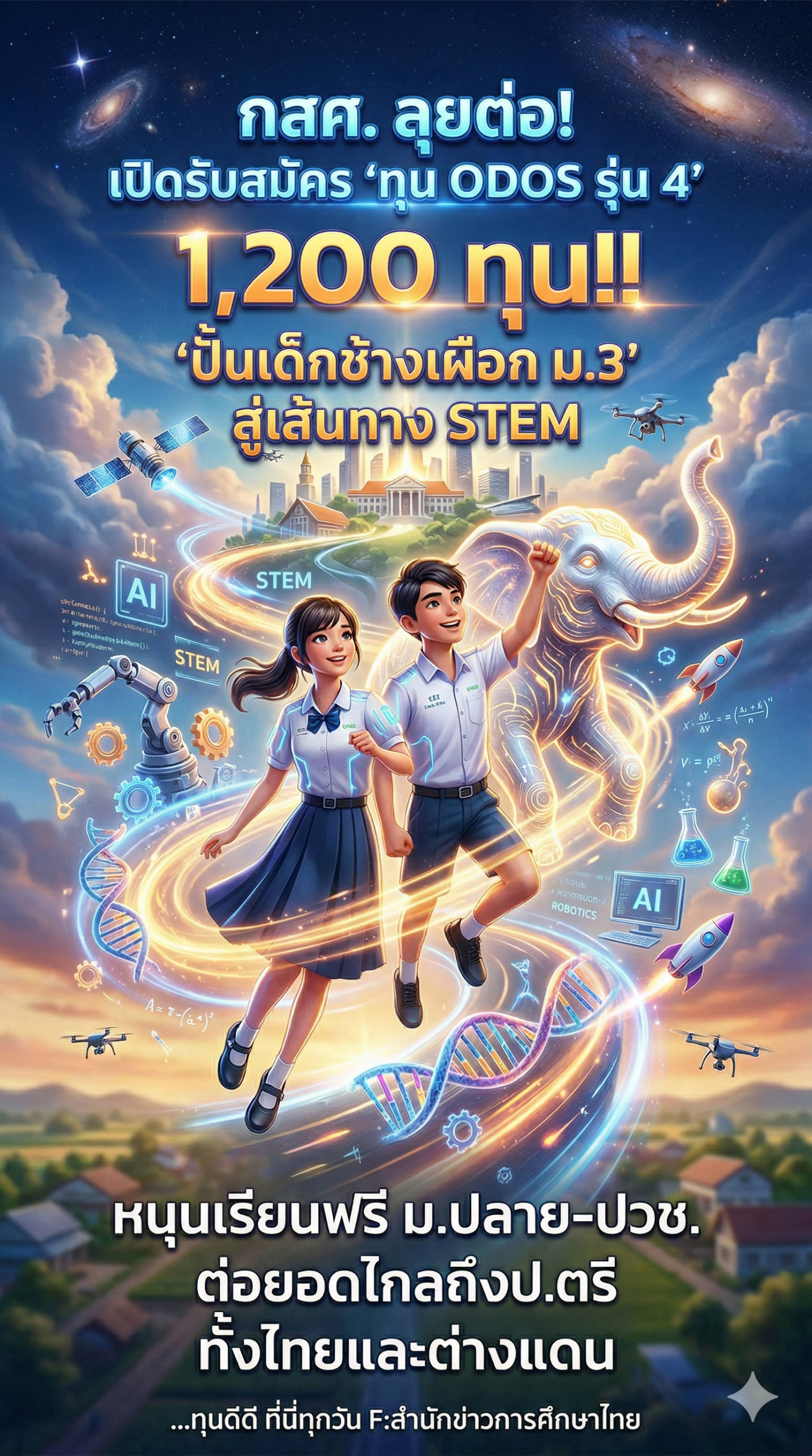 การเปิดรับสมัครทุน ODOS รุ่นที่ 4 ในครั้งนี้ ถือเป็นเส้นทางสายใหม่ที่จะเปลี่ยนอนาคตของเด็กไทย ให้สามารถก้าวข้ามข้อจำกัดทางการเงิน สู่การเป็นนวัตกรและบุคลากรสาย STEM ที่พร้อมพัฒนาประเทศอย่างยั่งยืน