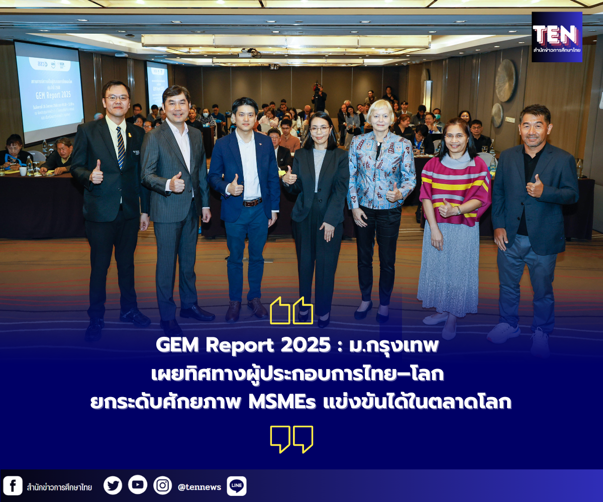 มหาวิทยาลัยกรุงเทพ ร่วมกับสำนักงานส่งเสริมวิสาหกิจขนาดกลางและขนาดย่อม (สสว.) จัดงานสัมมนา “สถานการณ์ความเป็นผู้ประกอบการไทยและโลก ประจำปี 2568 (GEM Report 2025)” ภายใต้โครงการสำรวจข้อมูลตามแนวทาง GEM (Global Entrepreneurship Monitor) ซึ่งเป็นเครือข่ายการศึกษาระดับนานาชาติที่ใช้ร่วมกันในหลายประเทศทั่วโลก การสัมมนาครั้งนี้ได้นำเสนอผลการวิจัยจากการประเมินสังคมผู้ประกอบการ โดยใช้ข้อมูลจาก GEM ครอบคลุมทั้งมิติทัศนคติของประชาชน ปัจจัยด้านสภาพแวดล้อม และระดับการมีส่วนร่วมของคนไทยในกิจกรรมเกี่ยวกับการเป็นผู้ประกอบการ ข้อมูลเชิงประจักษ์เหล่านี้จะเป็นแนวทางสำคัญในการกำหนดนโยบายและมาตรการ เพื่อยกระดับศักยภาพของวิสาหกิจขนาดกลาง ขนาดย่อม และขนาดย่อย (MSMEs) ให้แข็งแรง พร้อมก้าวสู่การแข่งขันในตลาดโลกได้อย่างมั่นใจ