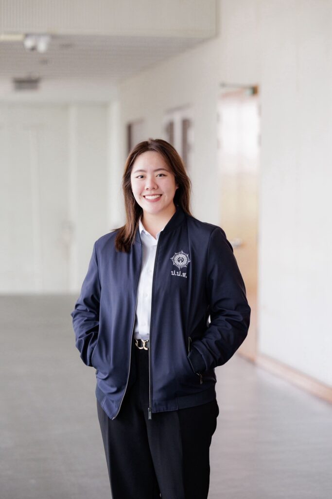 “หลังจบการศึกษาได้ทำงานในตำแหน่งเจ้าหน้าที่ปฏิบัติการ สำนักงานคณะกรรมการป้องกันและปราบปรามยาเสพติด (ป.ป.ส.) โดยรับผิดชอบดูแลงานครอบคลุมตั้งแต่ประสานงาน ติดตาม ตรวจสอบ รวบรวม และรายงานผลการดำเนินงานด้านการป้องกันยาเสพติด ไปจนถึงการสนับสนุนกิจกรรมสร้างการรับรู้ รณรงค์ เผยแพร่ข้อมูลข่าวสาร ทั้งยังลงพื้นที่จัดนิทรรศการและสร้างความร่วมมือกับชุมชนอีกด้วย ซึ่งองค์ความรู้จากห้องเรียนมีบทบาทอย่างมากสำหรับการทำงานในปัจจุบัน โดยด้านอาชญาวิทยาช่วยให้สามารวิเคราะห์สาเหตุเชิงลึกของปัญหา ทั้งมิติบุคคล สังคม และโครงสร้าง ทำให้มาตรการป้องกันตอบโจทย์บริบทจริง ขณะเดียวกัน ความรู้ด้านนิติวิทยาศาสตร์ช่วยให้เข้าใจกระบวนการตรวจสอบและพิสูจน์ข้อมูลอย่างถูกต้อง เสริมประสิทธิภาพการบูรณาการงานป้องกันและบังคับใช้กฎหมายได้อย่างครบวงจร”