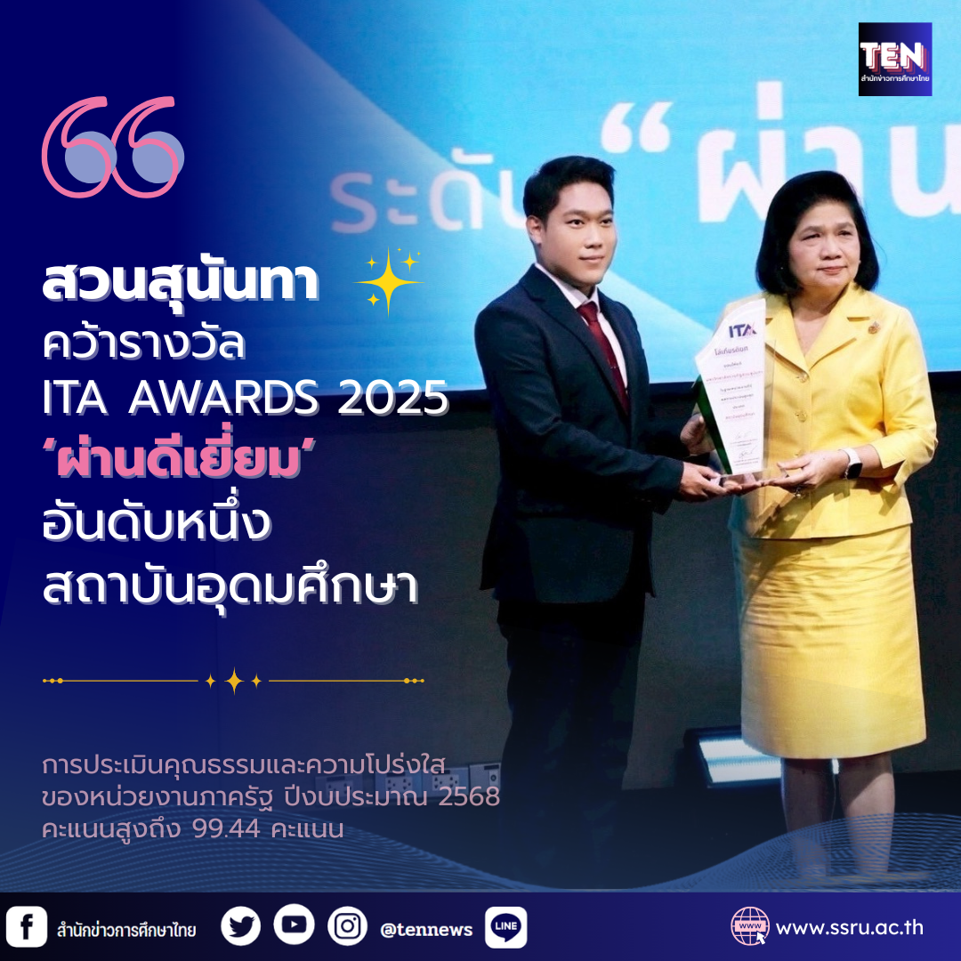 ssr162 Post navigation Previous: สวนสุนันทา คว้ารางวัล ITA AWARDS 2025 “ผ่านดีเยี่ยม” อันดับหนึ่งสถาบันอุดมศึกษา